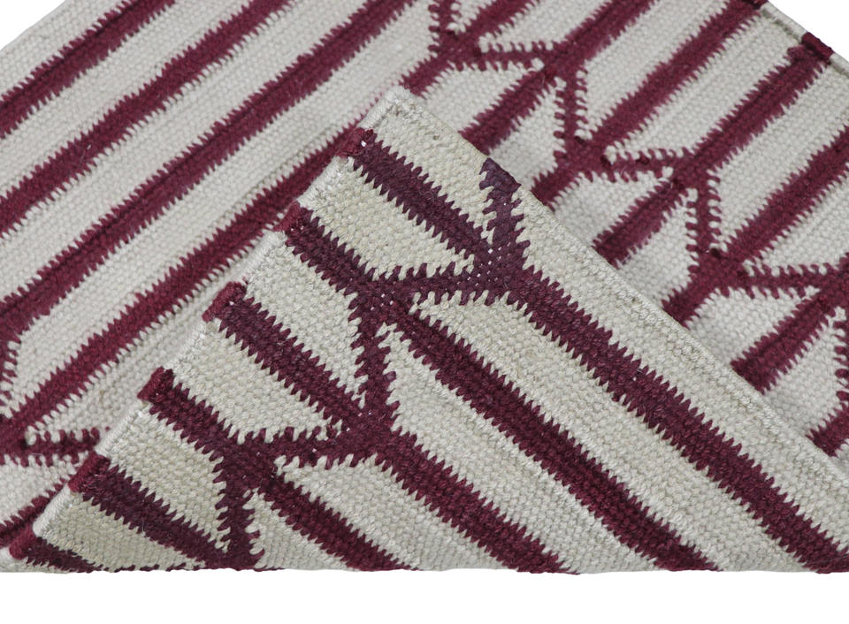Tapis Dhurrie moderne en laine écologique, tissé à la main, en fil fin, à armure plate, fin, à rayures géométriques beige-maroon, pour la maison, le bureau, le couloir