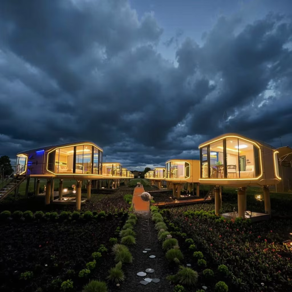 Maison mobile miniature moderne préfabriquée écologique Cabine capsule spatiale Maison mini dirigeable Pod Hôtel Acier Tendance Capsule écologique