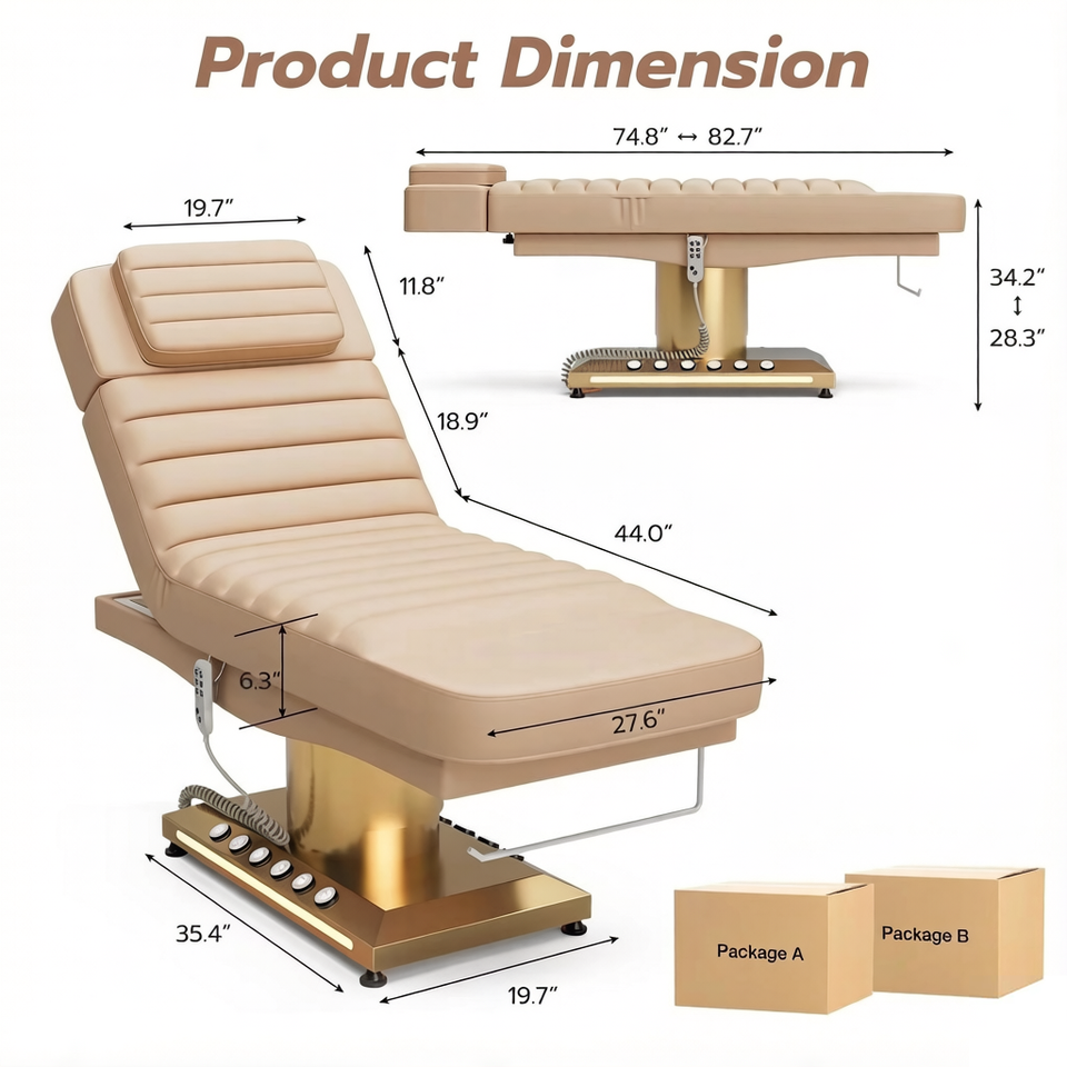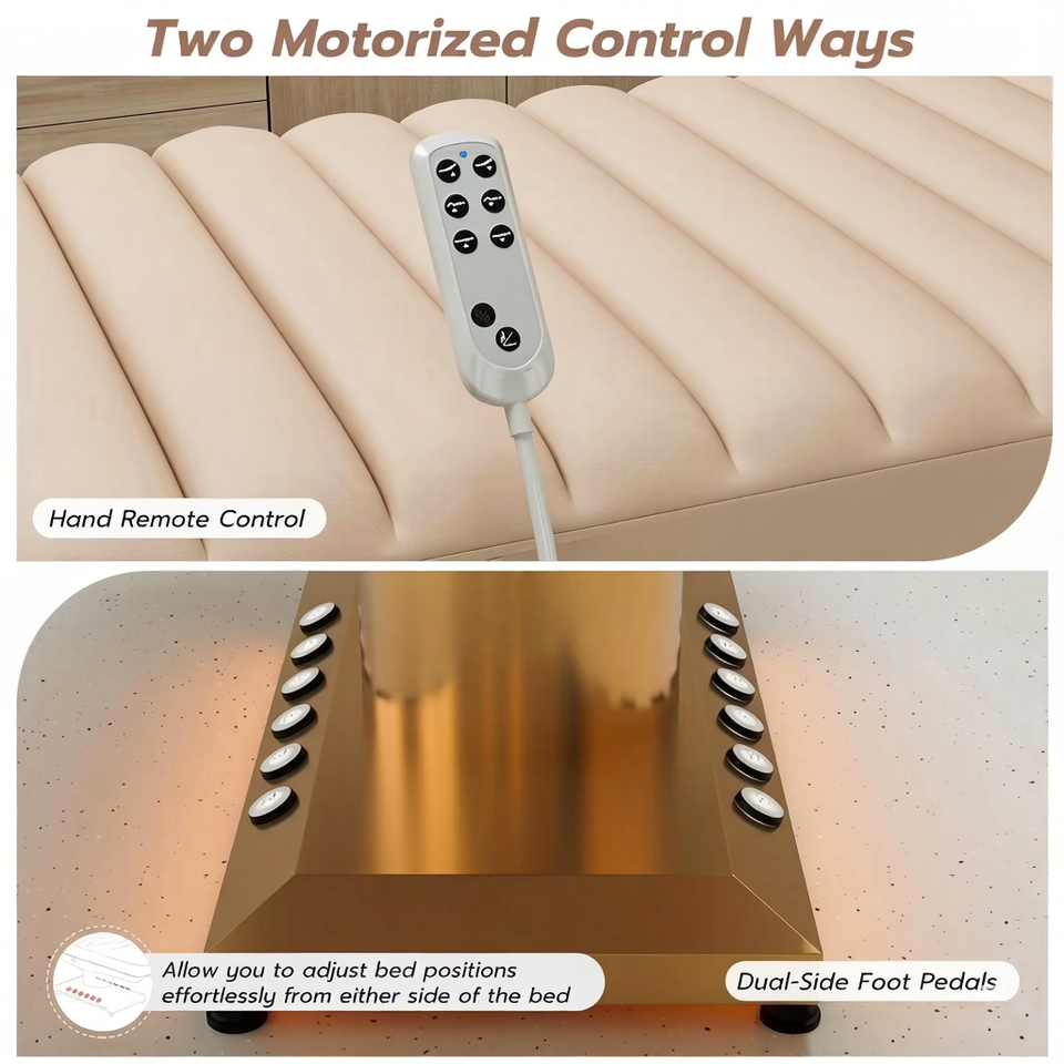 Table de massage électrique moderne à 3 moteurs rotatifs en acier inoxydable, lit de spa pour salon de beauté et extensions de cils, pliable avec commande au pied pour usage haut de gamme