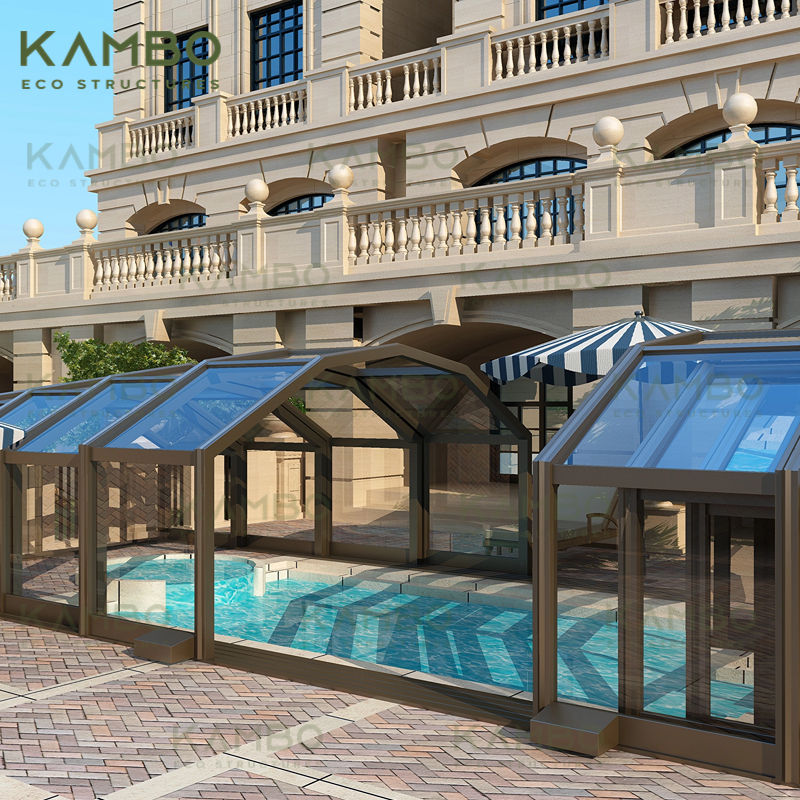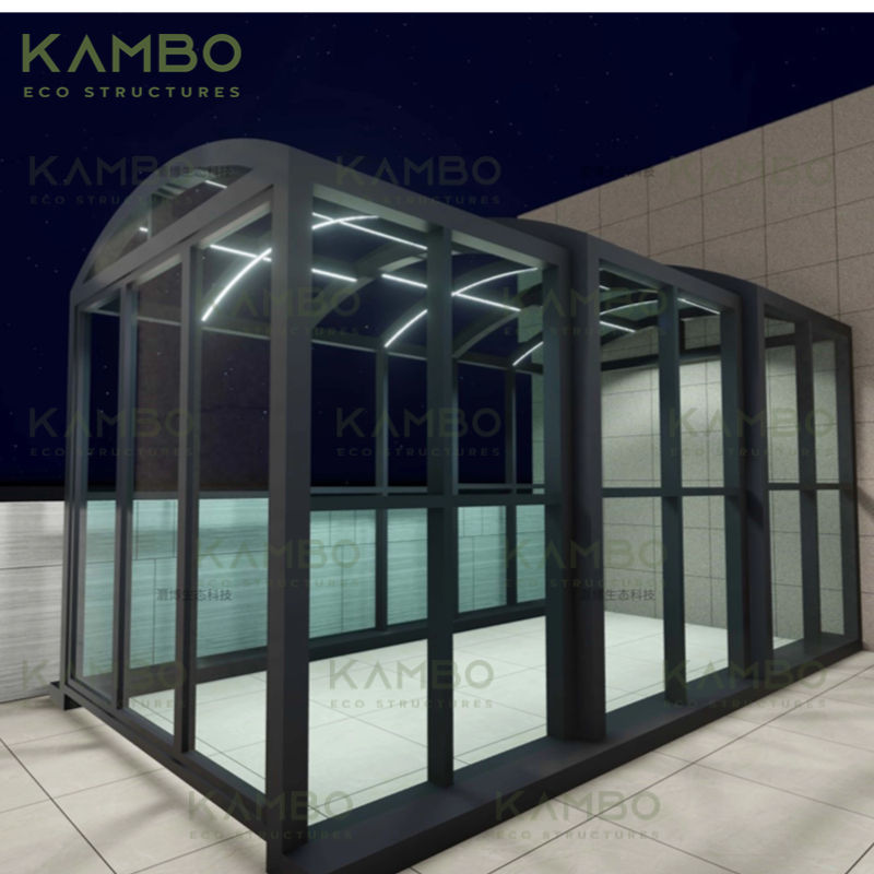 Moderne Électrique Automatique Mobile Maison En Verre Sun Room Serre Structure En Aluminium Rétractable Coulissant Serre Villas