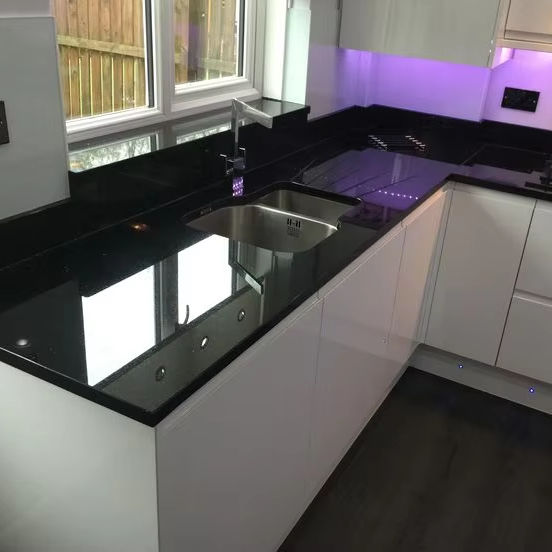 Modern Elegant Black Galaxy Granite Slabs Antiqued Surface Finish for Interior and Exterior Designs for Villas