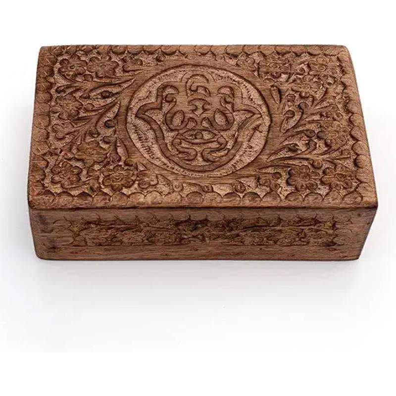 Modern Elegant Square Shaped Mini Wooden Jewellery Box Hand Carved Storage Container for Gifting for Jewelry from India