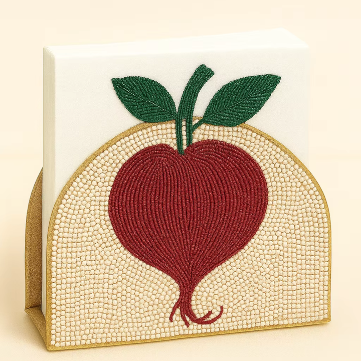 Organisateur de serviettes moderne brodé de perles, design radis artisanal de luxe, personnalisable, décoration de table, porte-serviettes, couleur rouge
