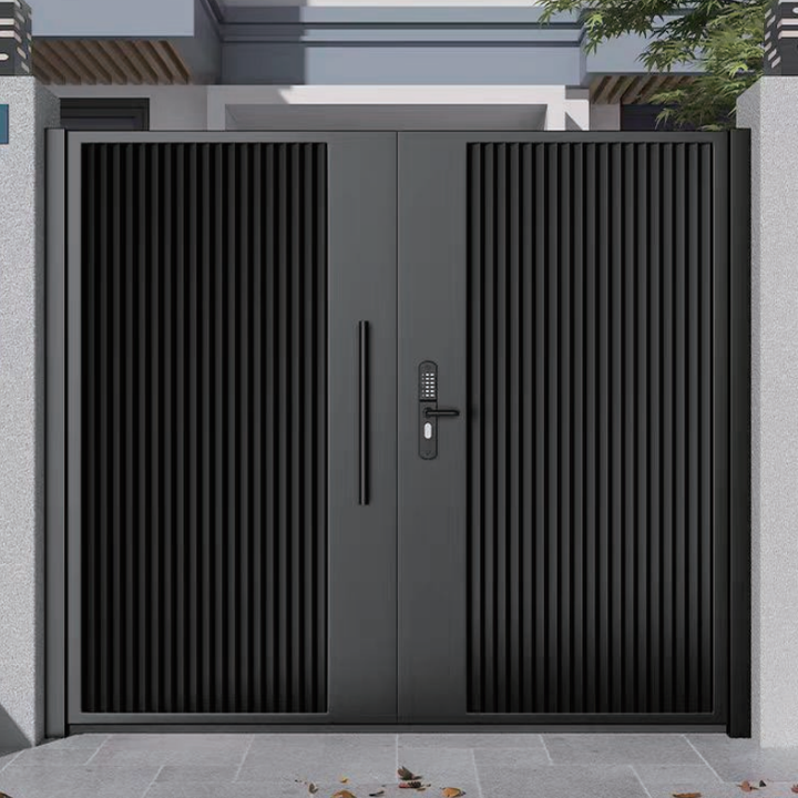 Porte de sécurité en aluminium de style moderne d'inspiration asiatique centrale, avec automatisation motorisée et artisanat moderne
