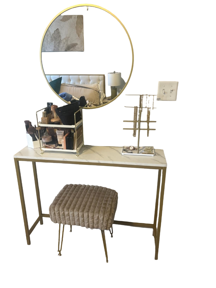 Tables console d'entrée modernes en métal fini or Meubles de salon pour couloir et maison Table console de luxe en or avec dessus en marbre blanc