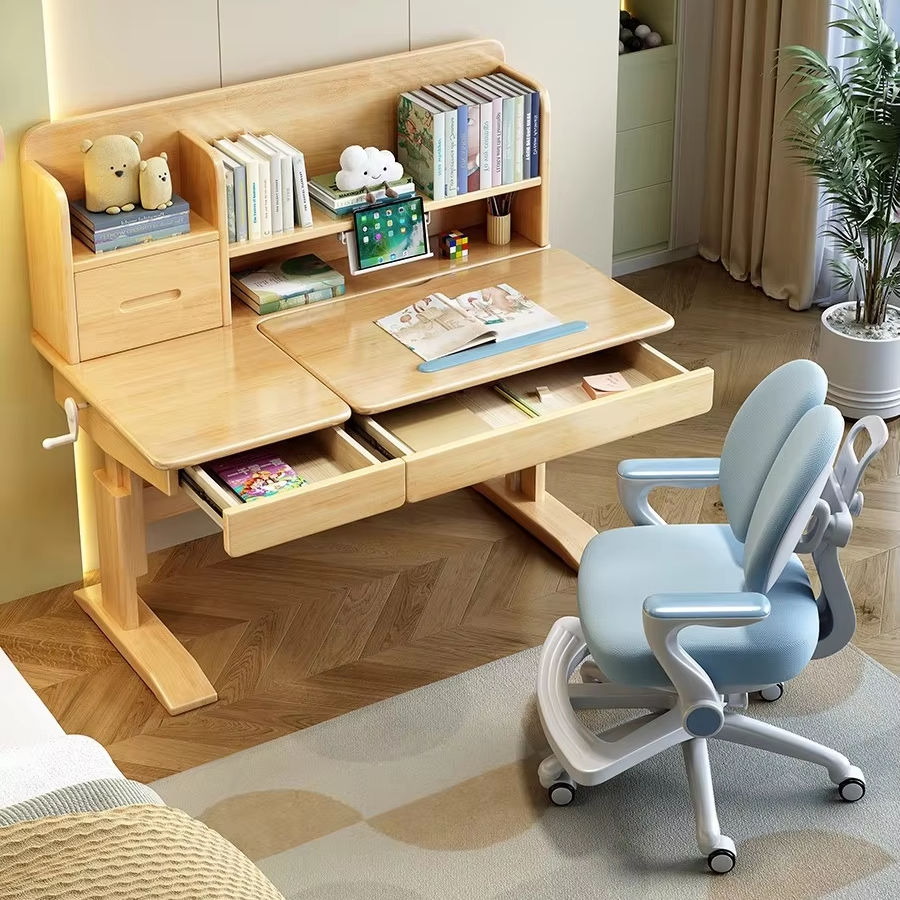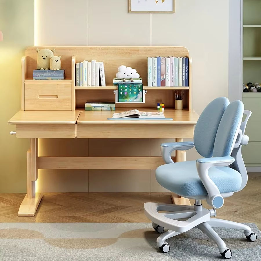 Chaise de bureau moderne ergonomique et réglable en bois massif avec 2 tiroirs, suite d'étude multifonctionnelle pour enfants, apprentissage à domicile