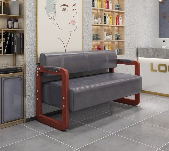 Chaise en cuir double au design moderne et européen Ensemble en bois à ossature métallique dorée pour salon de beauté Hôtel Salle d'attente Appartement