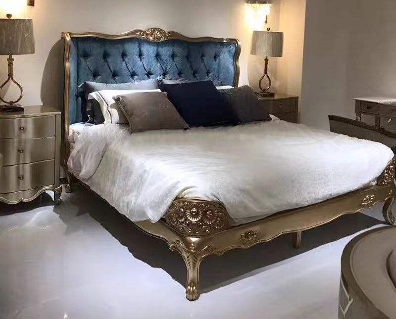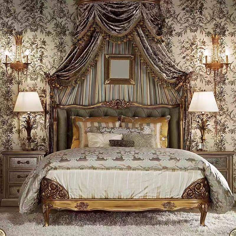 Lit en bois massif moderne européen de haute qualité avec chambre à coucher de villa à fleurs sculptées Lit de maison de mariage classique luxueux de 1.8 mètres