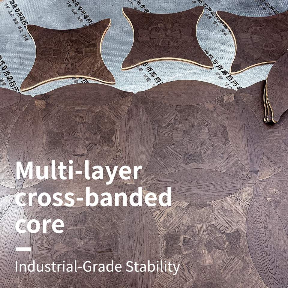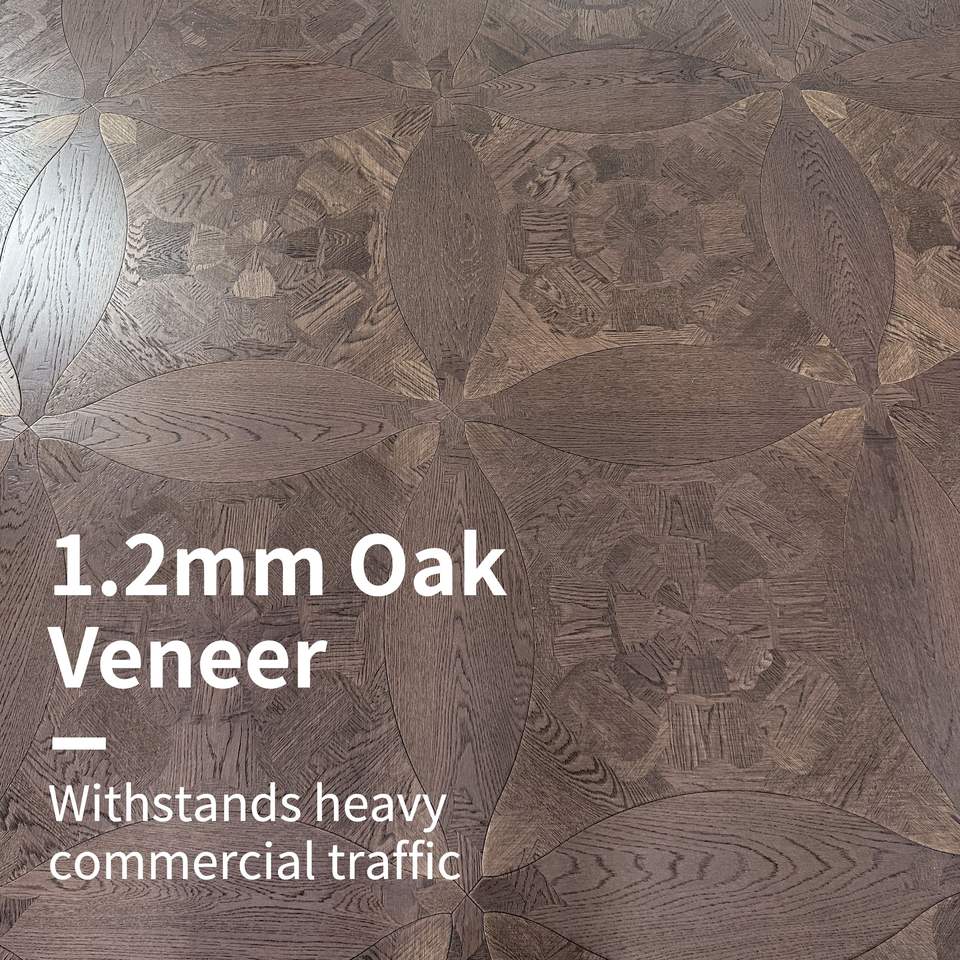 Parquet moderne européen Princesse Anne Mocha foncé, médaillon fendu, placage de chêne, écologique, système de pose à clipser, qualité AB, pour chambre, UV