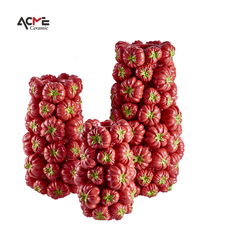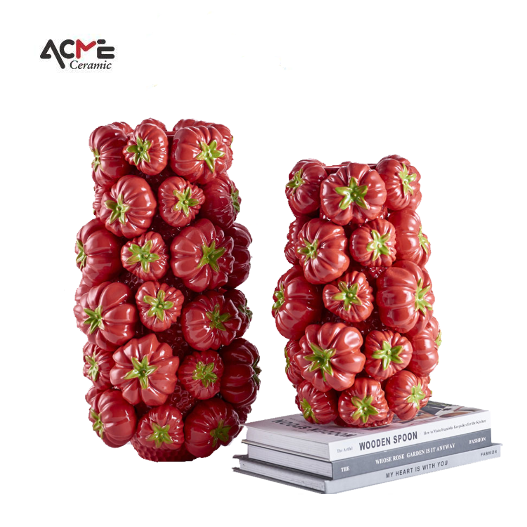 Vase à fruits rond en céramique moderne européen simple et Art déco, décorations d'intérieur, ornements, vase à tomates