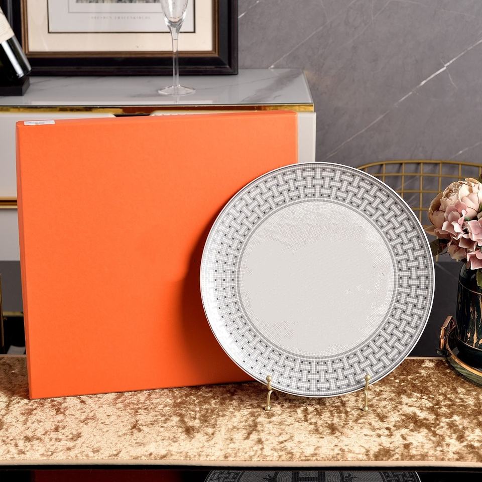 Ensemble d'assiettes en porcelaine de style européen moderne de 12 pouces avec motif de plantes et de fleurs, blanc, passe au lave-vaisselle, vaisselle pour les fêtes