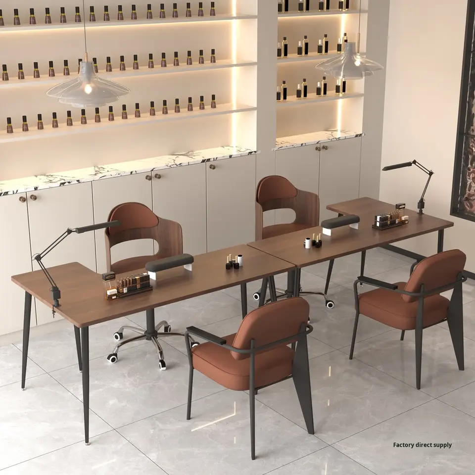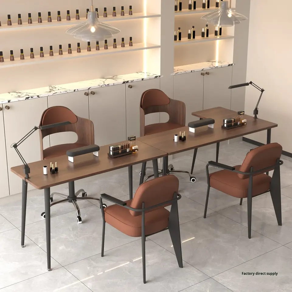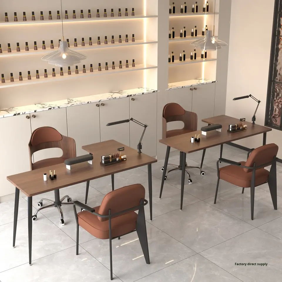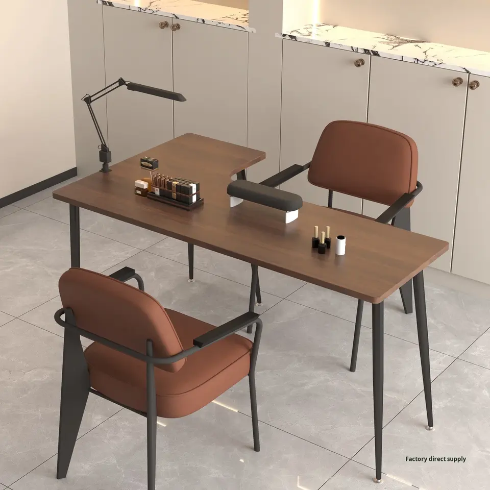 Ensemble de table et de chaise d'angle en bois moderne européen pour salon de beauté, studio de manucure, mobilier de salon commercial, simple/double
