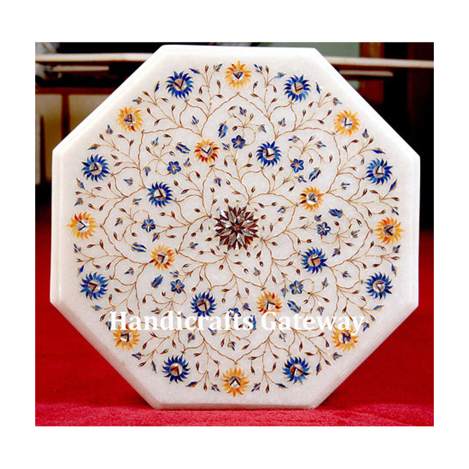 Modern Exquisite White Marble inlay Conference Table Top with Elegant Marble Inlay Top Set For Living Room Use Handicrafts Table