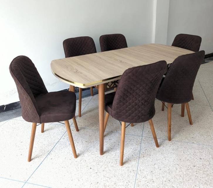 Ensemble de table à manger extensible moderne, 7 pièces, chaises rembourrées, pieds en bois, installation facile, Mabelia HKTN01, salle à manger d'hôtel