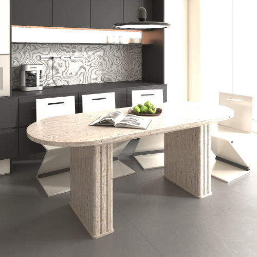 Table à manger extensible moderne pour 8 personnes, table de cuisine ovale avec base en MDF pour villa et hôtel