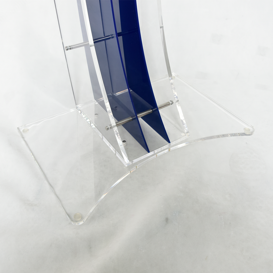 Vente d'usine moderne de pupitre d'église en bois faucille bleue podium en acrylique élégant podium en acrylique assemblage facile pour les discours de bureau