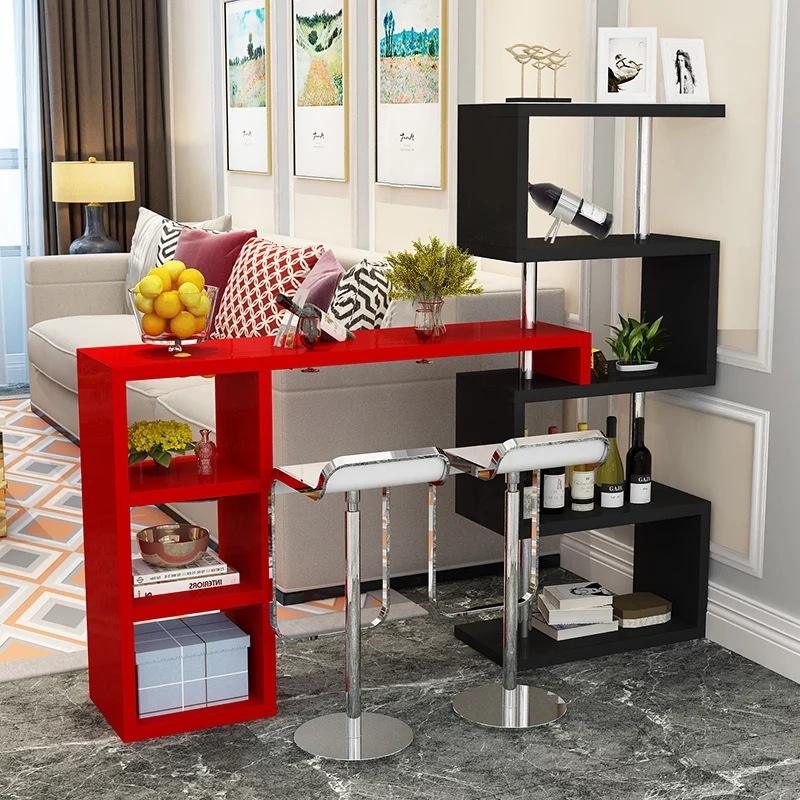 Table de bar familiale moderne en panneau de fibres de bois à densité pour la maison Bar Salon Hôtel Appartement Meubles de loisirs avec présentoir de rangement