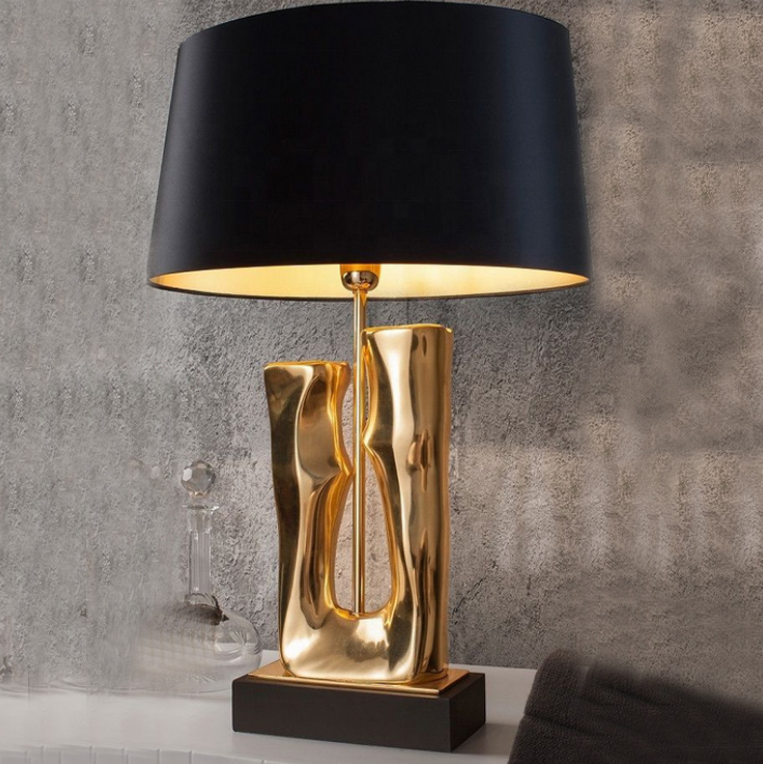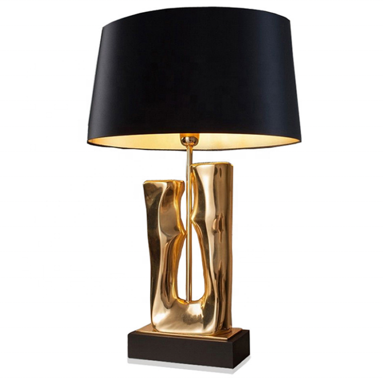 Lampe de table moderne et élégante, luminaire portable, éclairage de bureau, intérieur, chambre à coucher, abat-jour en tissu noir, support en métal, art déco
