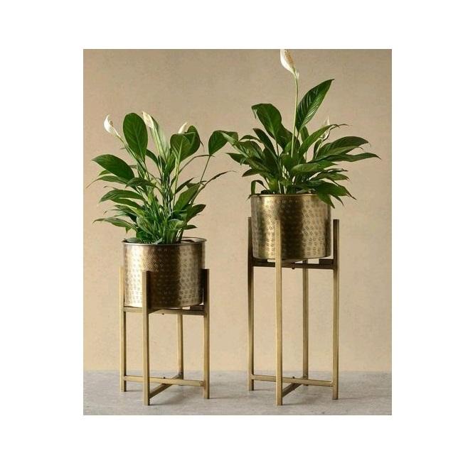 Ensemble de 2 jardinières de fantaisie modernes Pot de fleur rond en métal de meilleure qualité avec support pour la décoration du salon