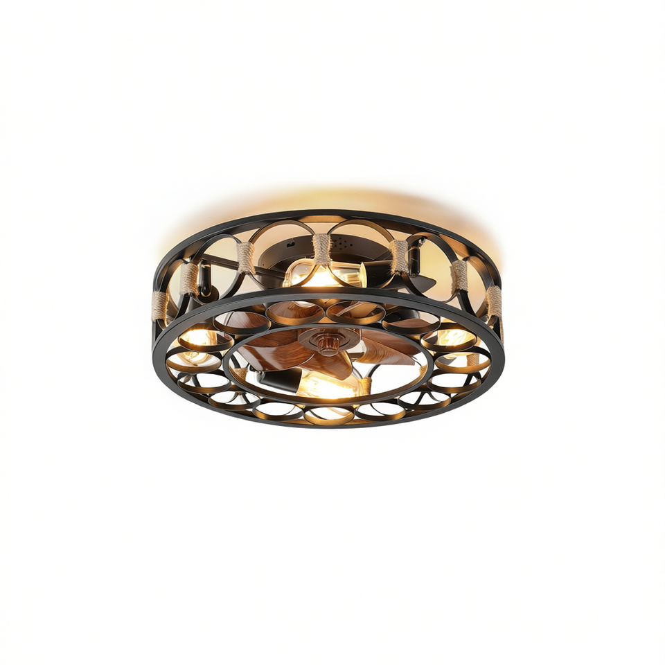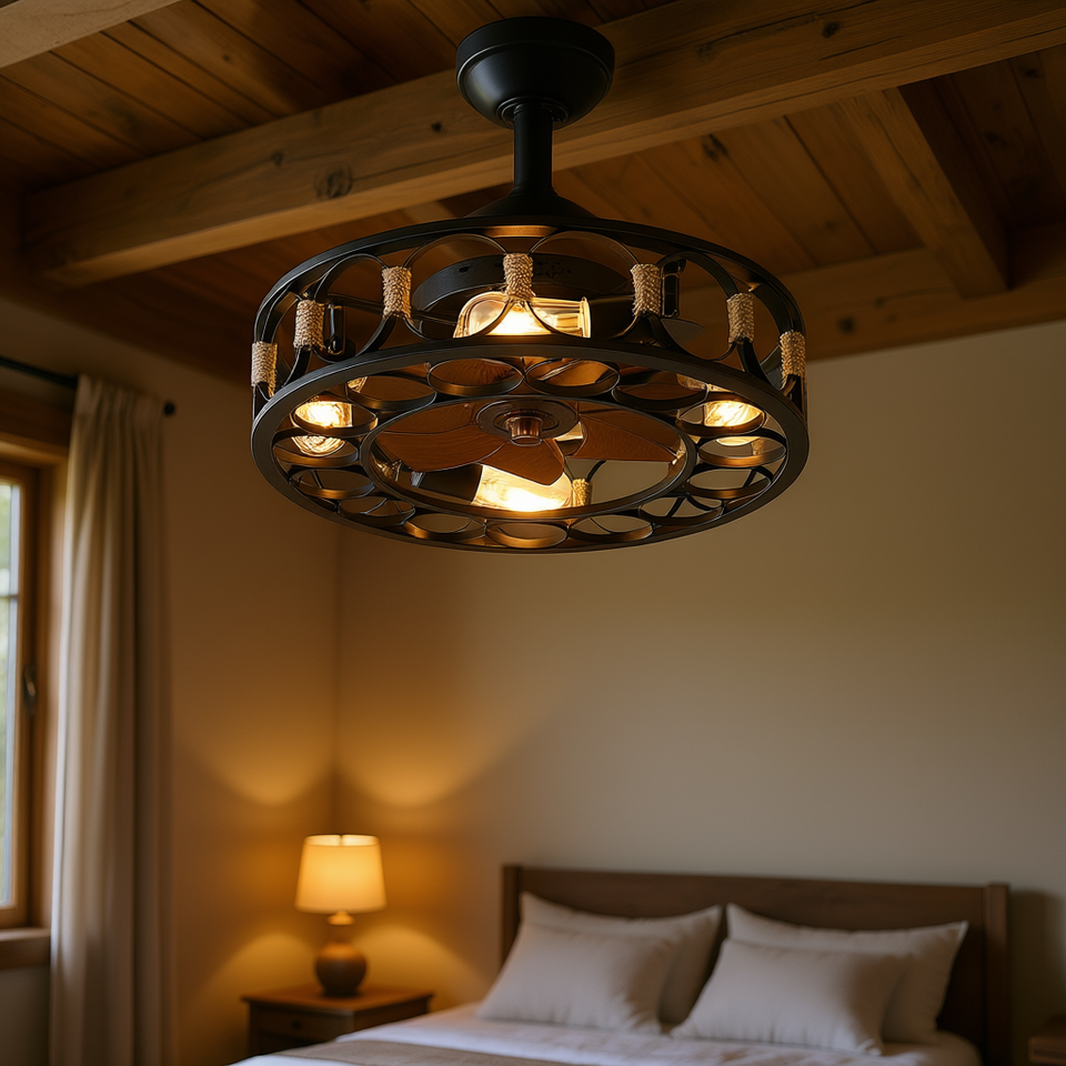 Ventilateur de plafond moderne style ferme, 6 vitesses, pales réversibles, LED, design en cage, télécommande, moteur DC, 32-48 pouces