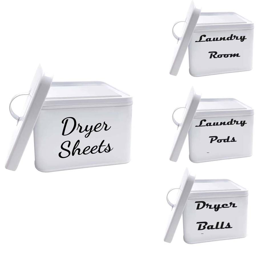 Porte-feuille de sèche-linge en métal de style ferme moderne assouplissant distributeur d'étain couvercle buanderie organisation boîtes de rangement bacs