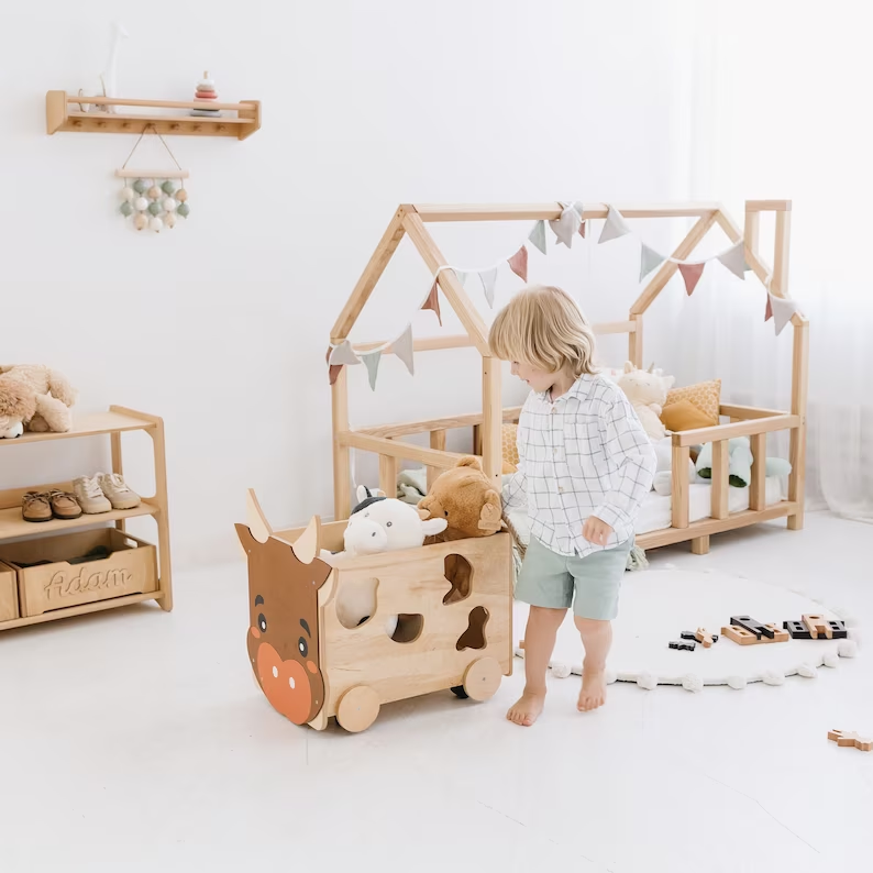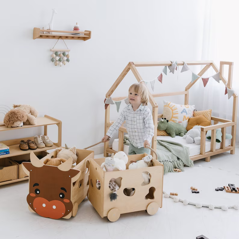 Modern Farmhouse Wooden Bed for Babies & Kids' Storage