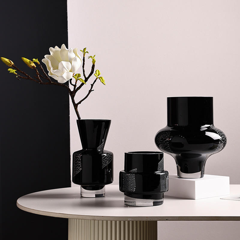 Nom du produit:Ensemble de vases à fleurs en verre noir, style moderne