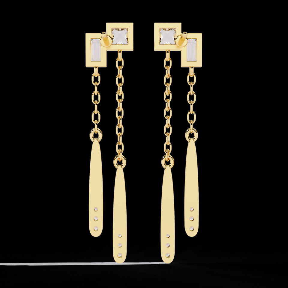 Boucles d'oreilles modernes à la mode en or 14kt à double chaîne en forme de goutte pour femmes.