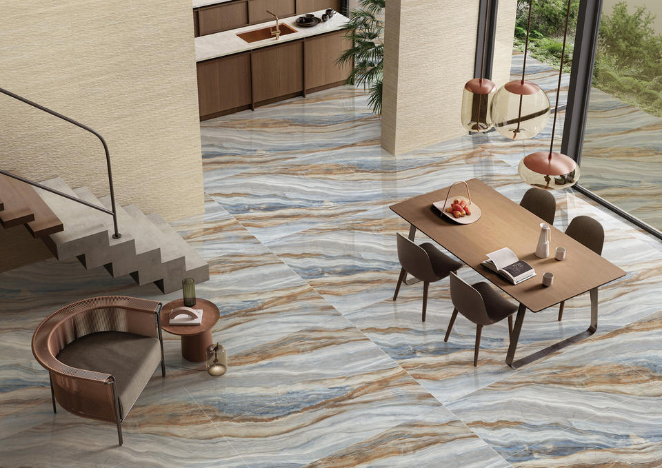 Carreaux de mur et de sol intérieurs en porcelaine polie brillante à texture marbrée moderne et élégante pour hôtel et maison 900x1800