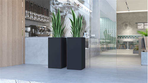 Jardinière moderne en fibre de verre en forme de feuille en relief Pot d'arbre intérieur extérieur Pots de fleurs en fibre en gros