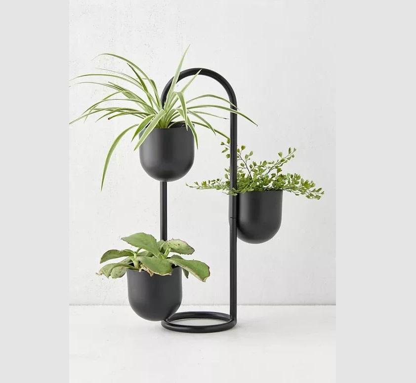 Jardinière en métal au fini moderne pour les thèmes de décoration contemporains, ajoutant une touche verte sophistiquée aux intérieurs