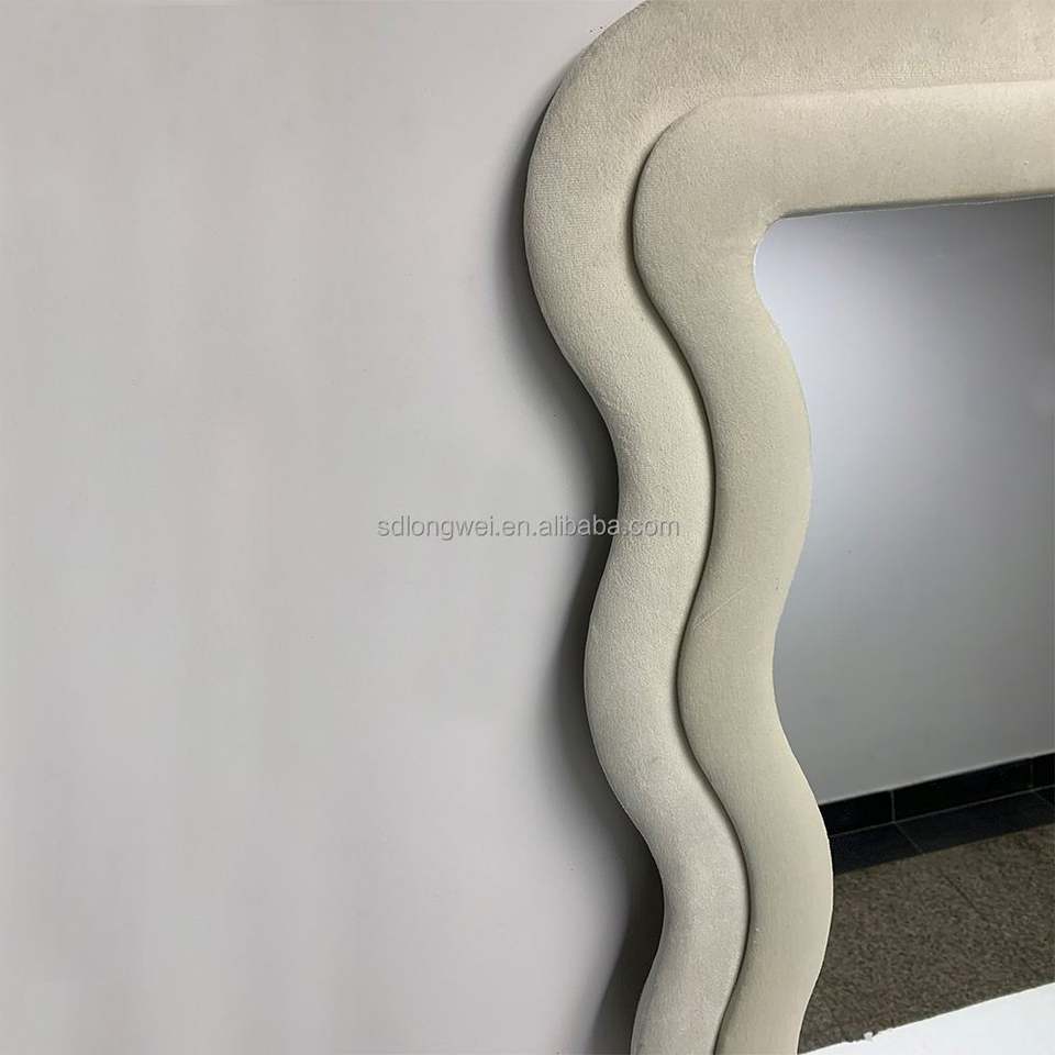 Modern Flannel-Wrapped Wooden Frame Full Body Mirror Irregular Wavy Wall Hanging for Cloakroom Living Room for Decorative