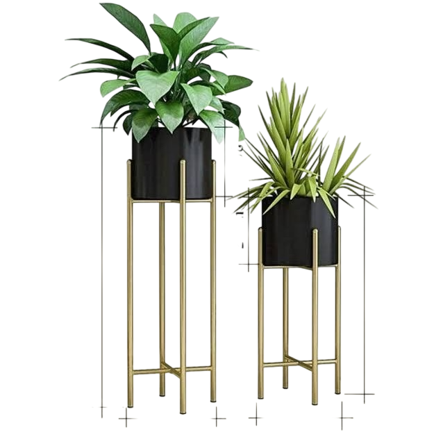 Jardinière moderne sur pied en cuivre avec base en acier noir robuste pour plantes d'intérieur, utilisée dans les maisons, les bureaux, les centres commerciaux et les halls