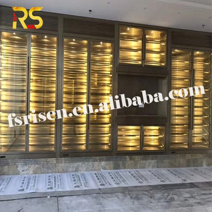 Casier à vin mural en acier inoxydable pour hôtel, présentoir à whisky et à vin.
