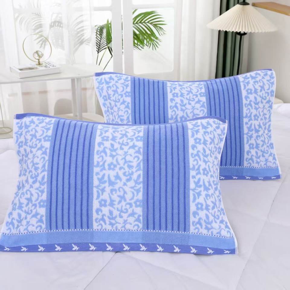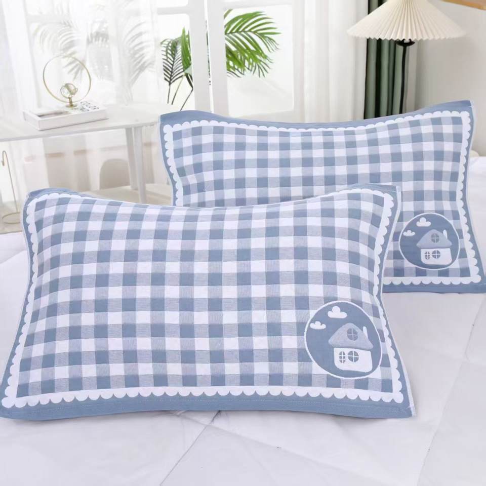Paire de taies d'oreiller en gaze de coton quatre couches florales modernes quatre saisons Grande serviette épaissie pour couple adulte étudiant pour la maison