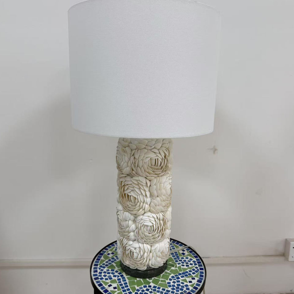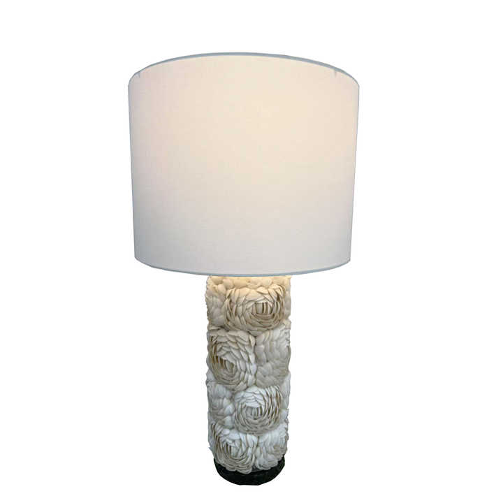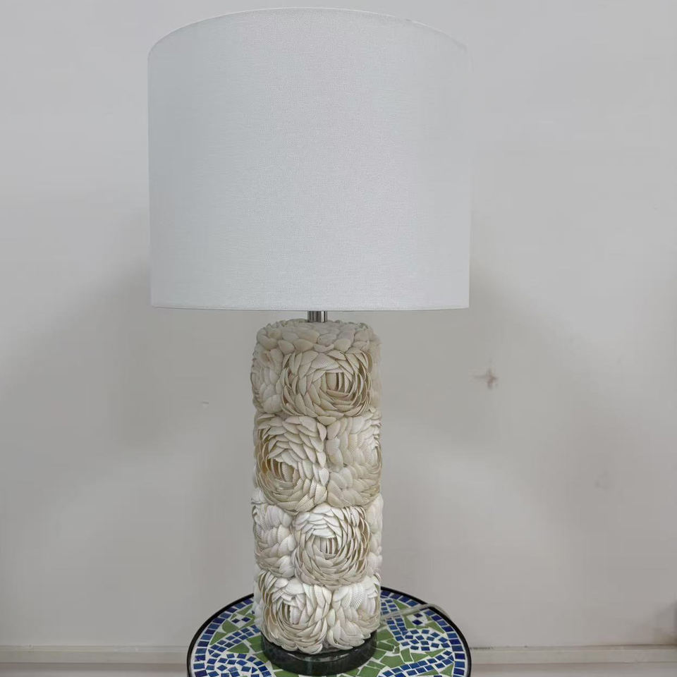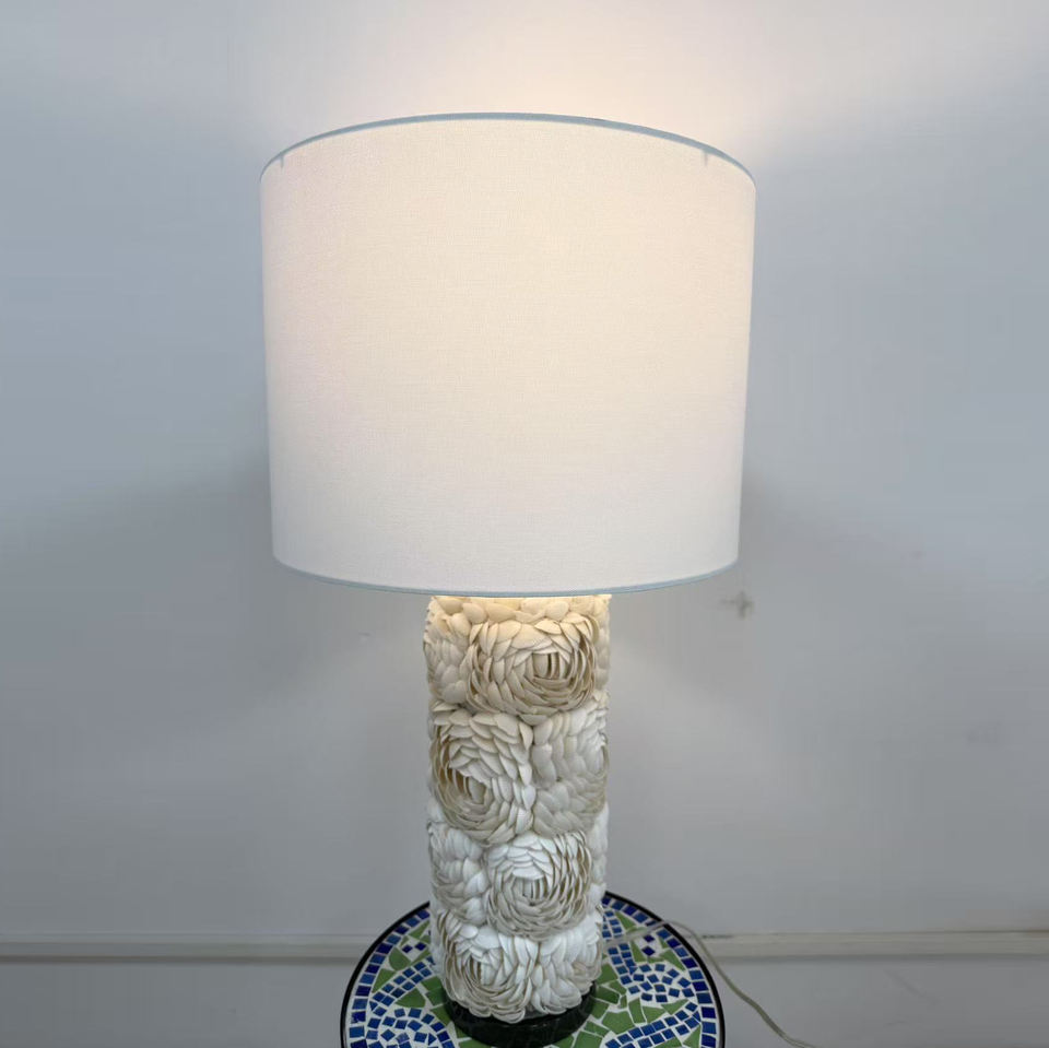 Lampe de table de chevet moderne à fleurs avec abat-jour en forme de cloche, base en coquillage, corps en résine Rosa Rugosa pour le salon ou la chambre à coucher
