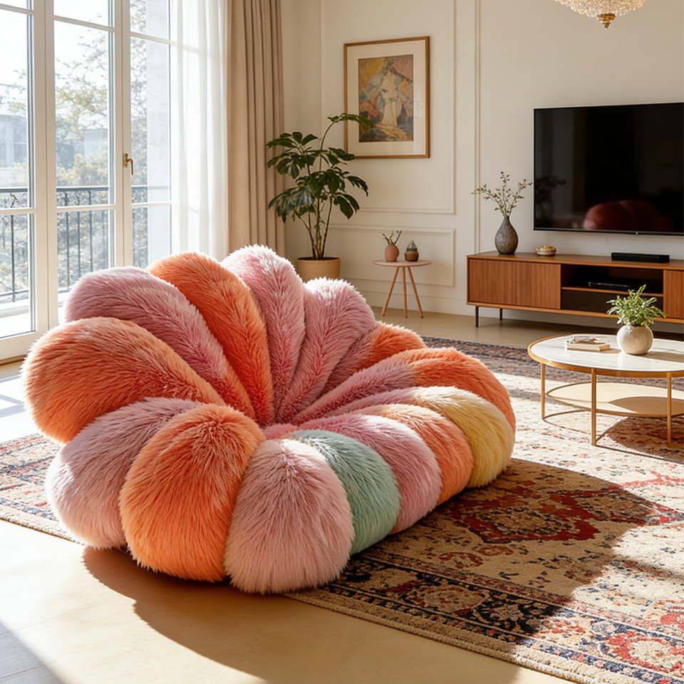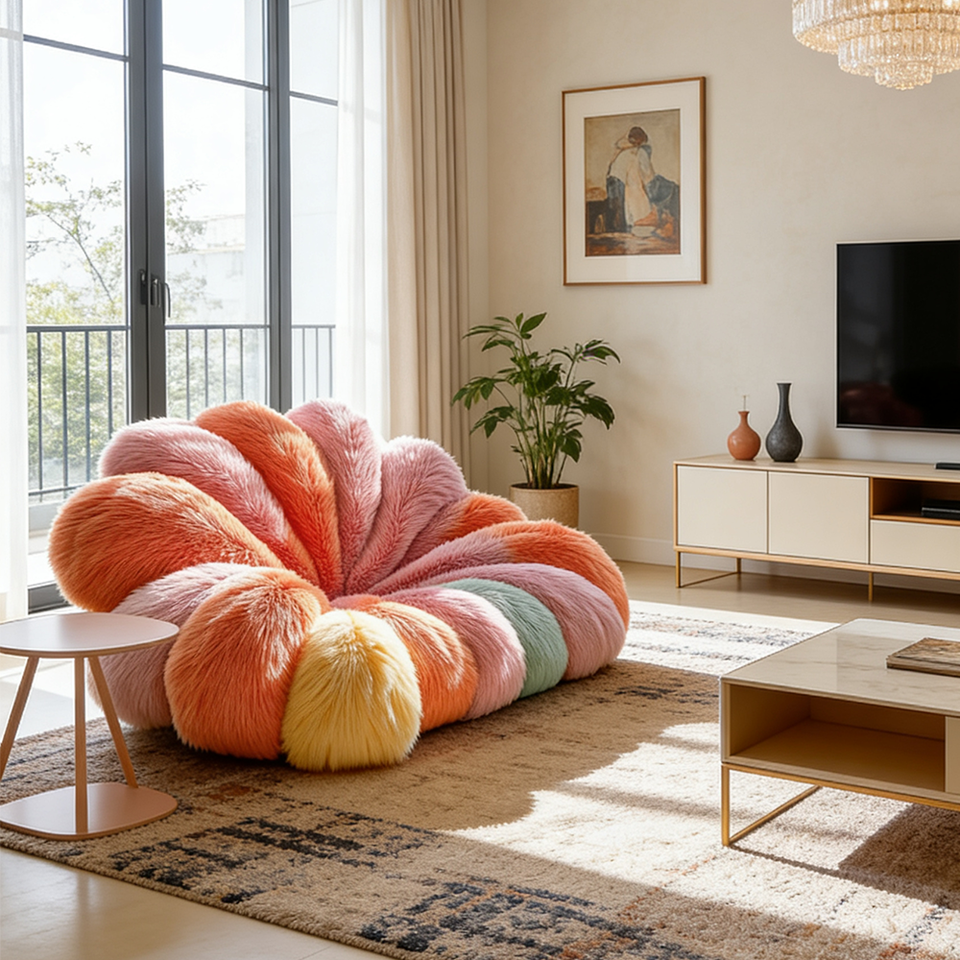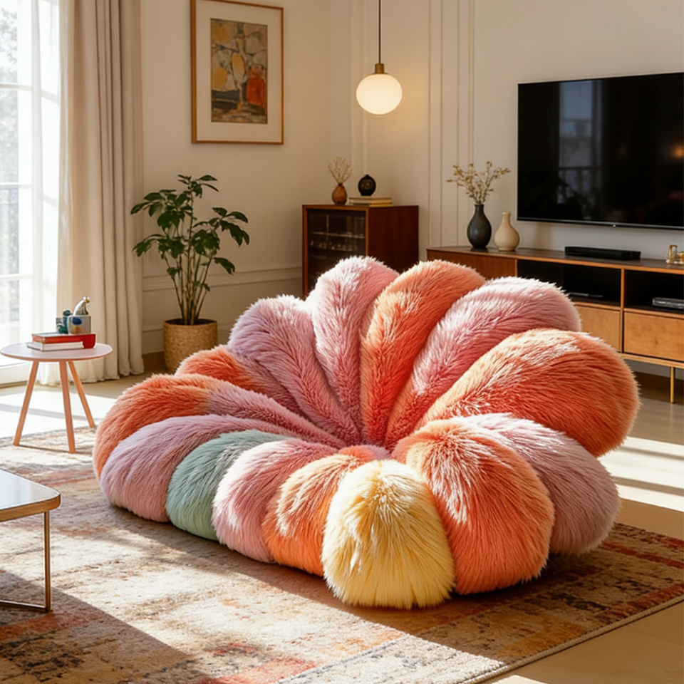 Canapé paresseux moderne en forme de pétale de fleur, fauteuil pouf en peluche longue et colorée, meubles confortables pour salon