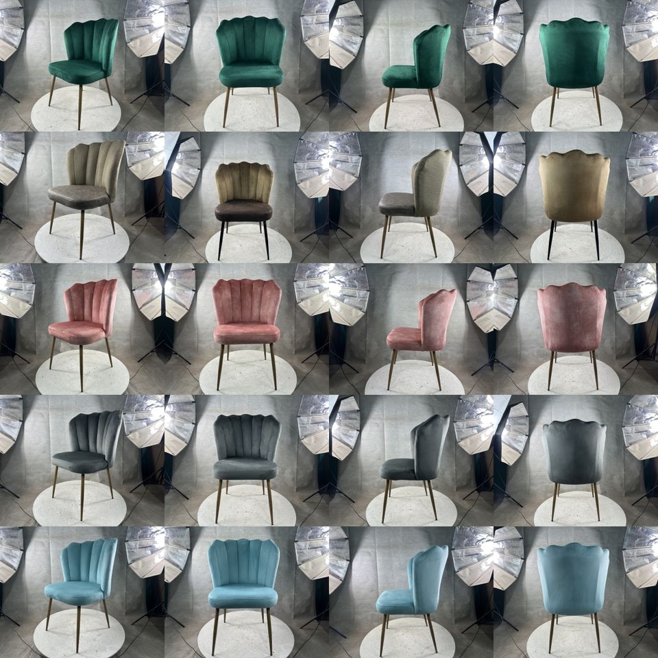 Chaise de salon moderne en forme de fleur Fauteuil confortable en velours tufté Chaise de salle à manger rembourrée