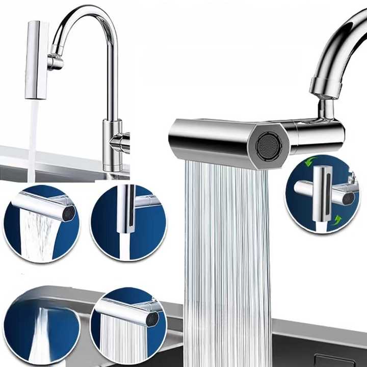 Robinet de cuisine universel pivotant moderne avec protection anti-éclaboussures, sortie en cascade, rallonge de robinet, connecteur