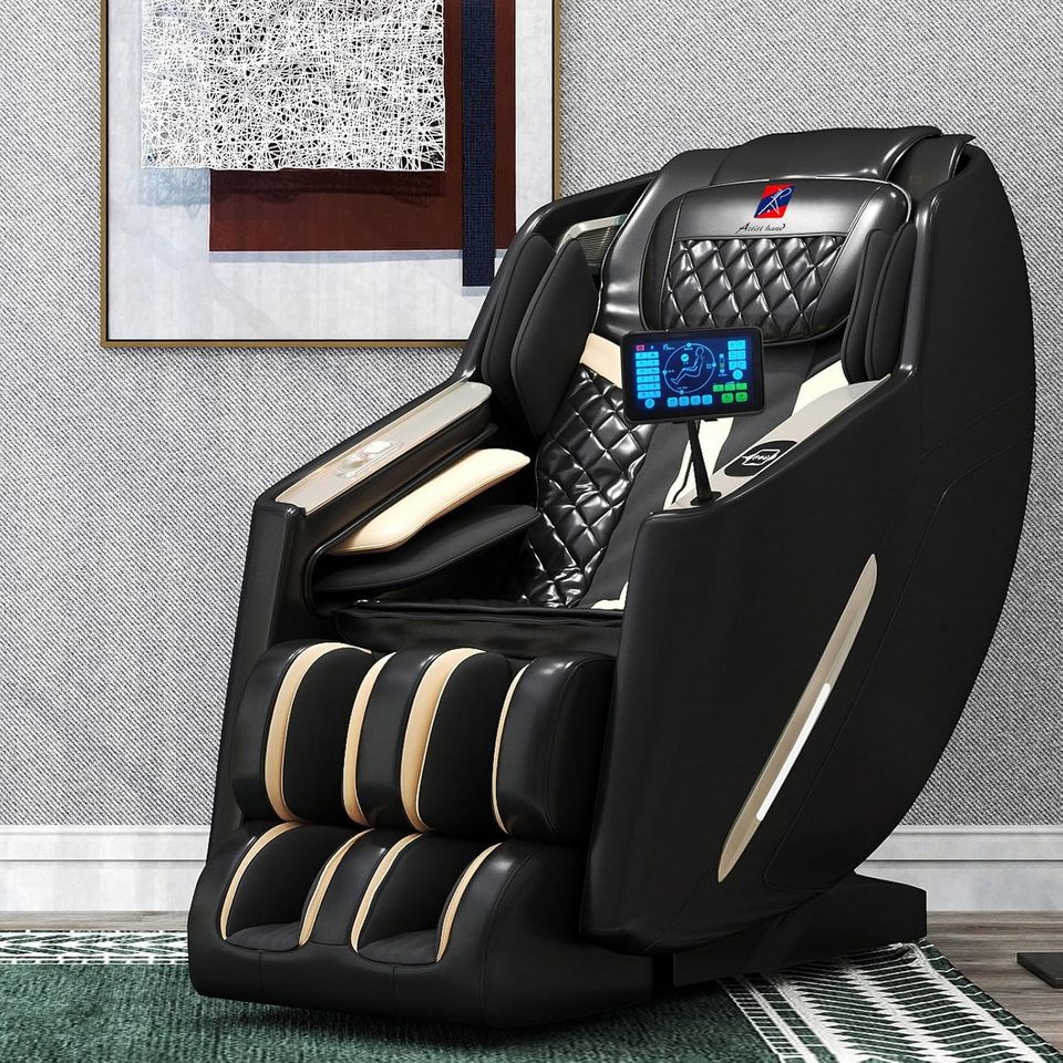 Fauteuil de massage Shiatsu moderne pliable 4D à gravité zéro avec rouleaux - Pression d'air et fonction de levage pour tout le corps, fonction musicale