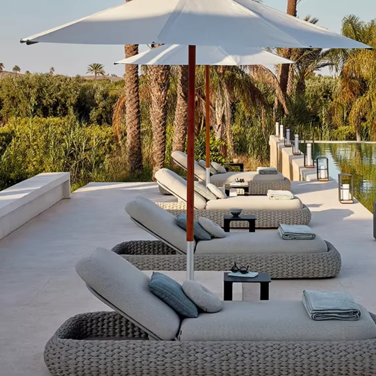 Chaise longue en rotin d'aluminium moderne et durable, inclinable, résistante aux UV, écologique pour une utilisation en extérieur, cour, parc, villa | Horti Club