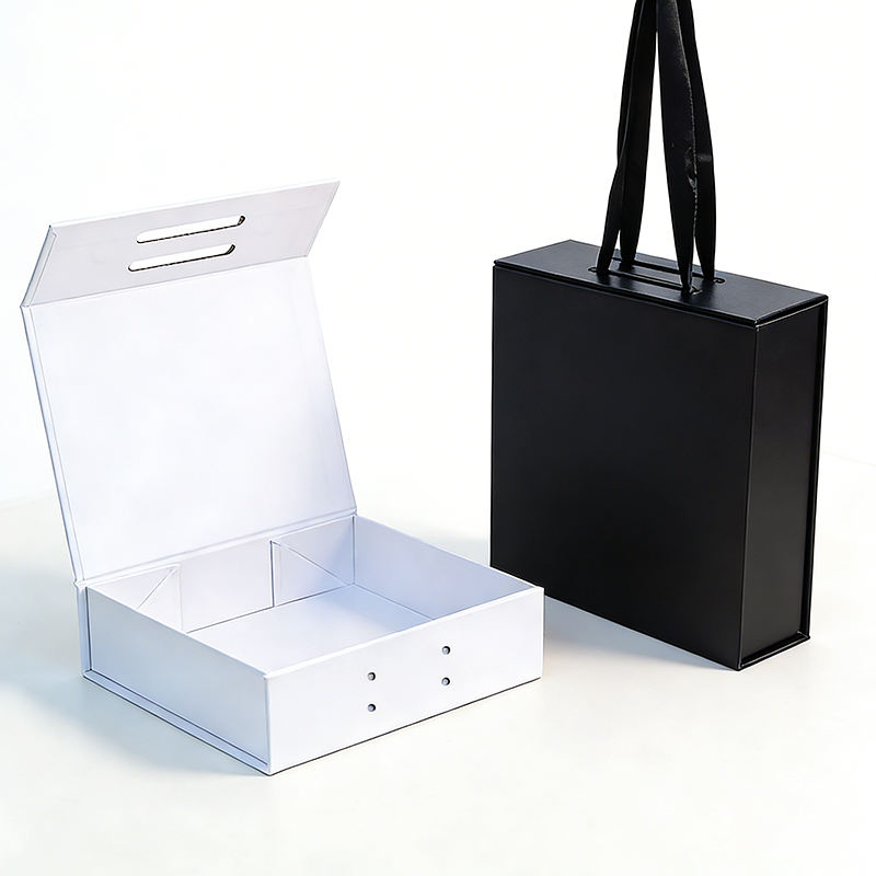 Boîte cadeau haut de gamme moderne pliable avec poignée en ruban, fermeture magnétique, finition mate écologique pour cosmétiques et produits de soin de la peau