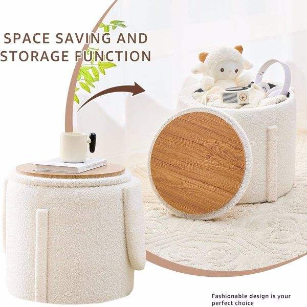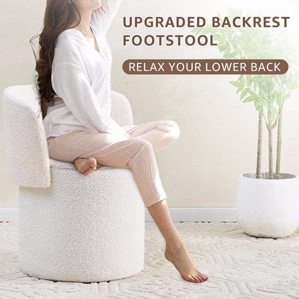 Tabouret de coiffeuse moderne pliable avec dossier, ottoman en velours Teddy, servant de siège supplémentaire et petite table d'appoint, repose-pieds de rangement moderne
