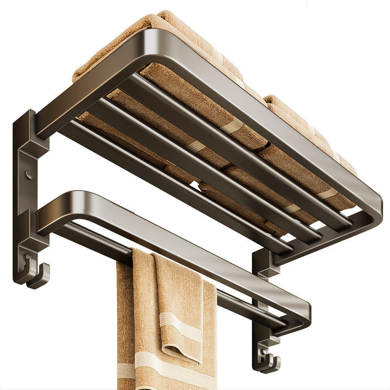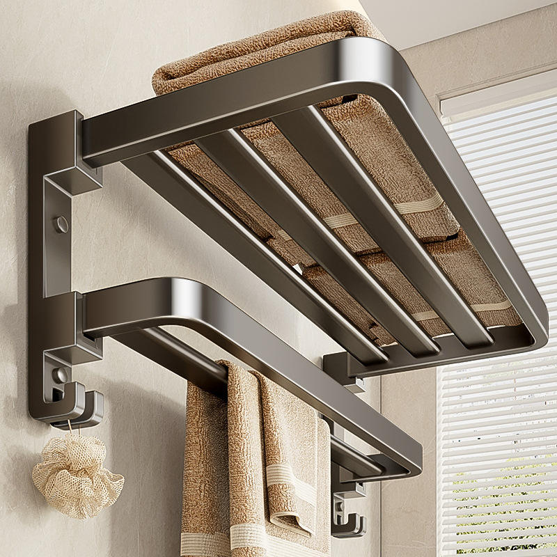 Porte-serviettes mural pliable moderne à 4 barres en aluminium spatial avec étagère et barre pour serviettes