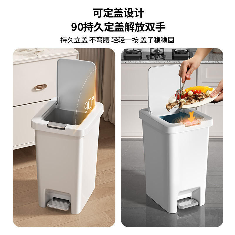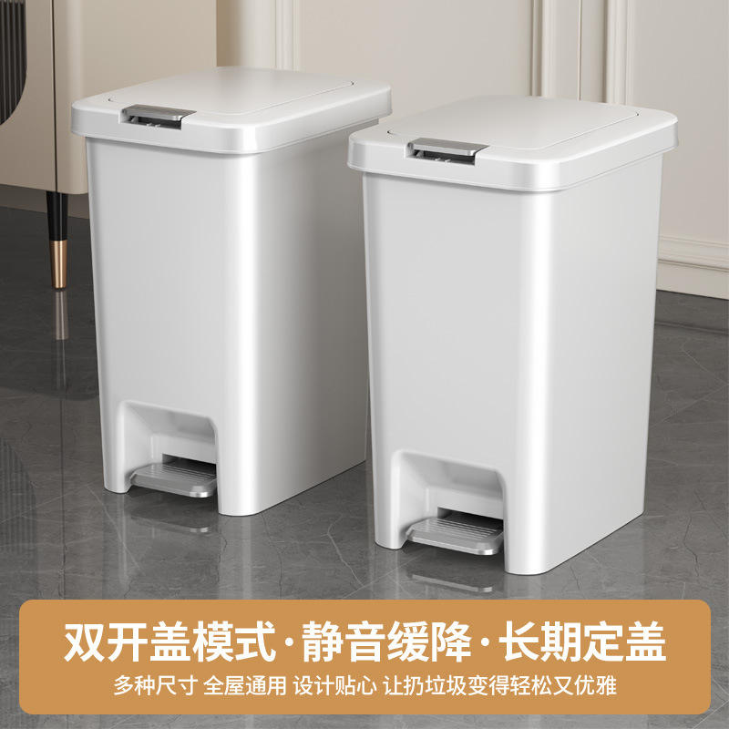 Poubelle moderne à pédale rectangulaire blanche et grise avec couvercle, grande capacité, pour la maison, la cuisine et la salle de bain