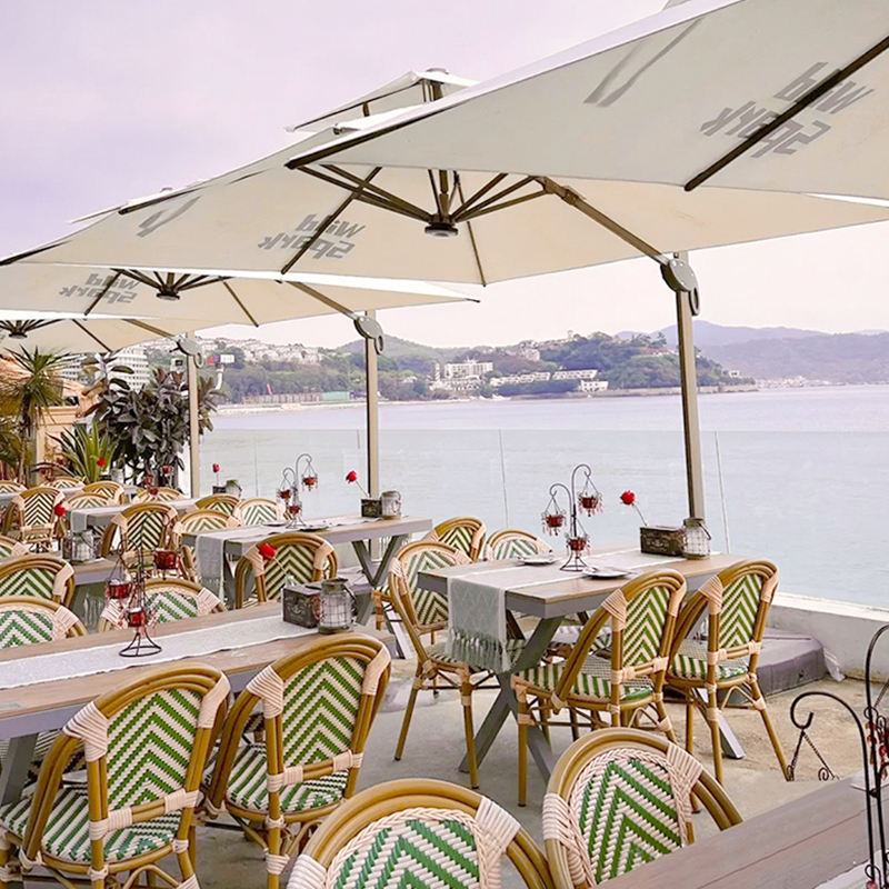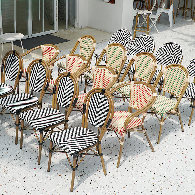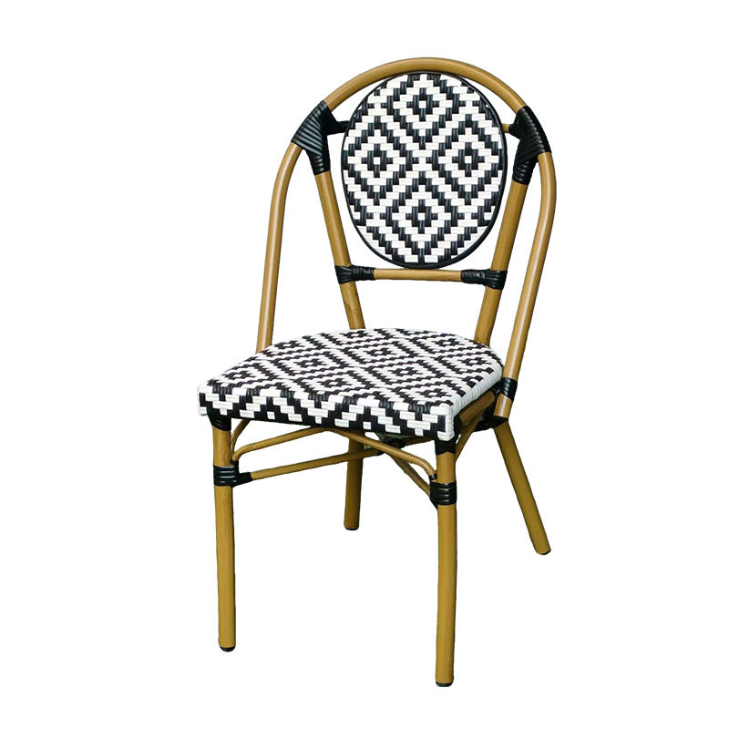 Table à manger en marbre de style bistrot français moderne, chaise en rotin confortable, mobilier d'extérieur pour jardin, café, hôtel, hall, parc