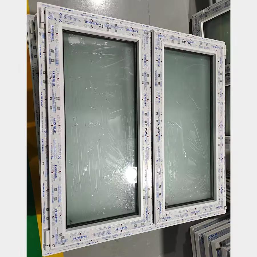 Fenêtre à battant UPVC à double volet moderne de style français Fenêtre résidentielle à battant en PVC Fenêtre ouverte Filet d'écran en acier inoxydable horizontal