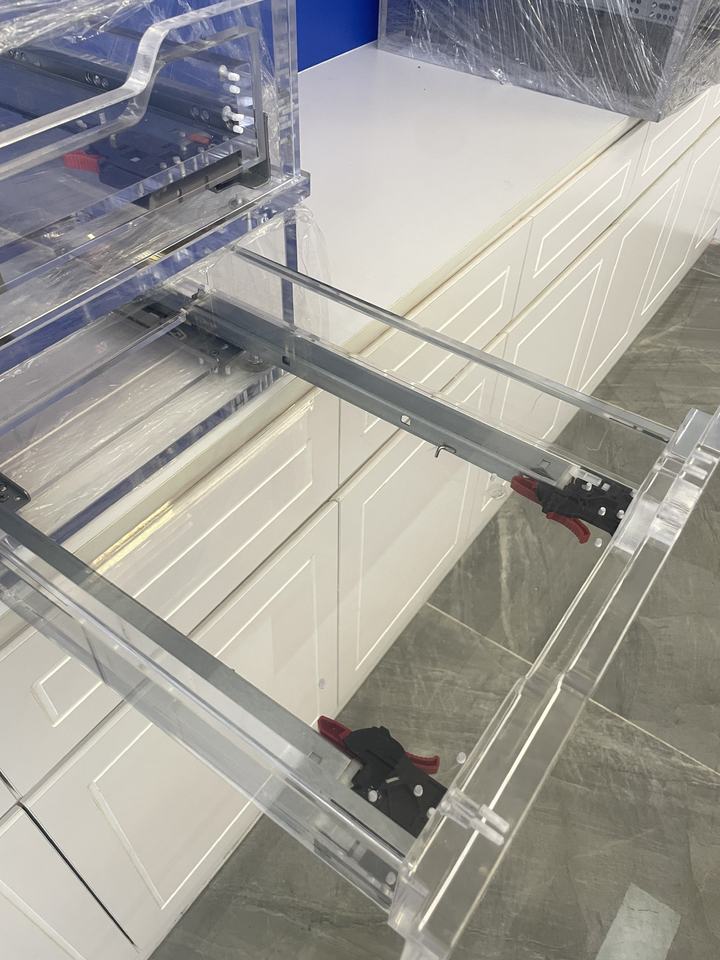 Glissières télescopiques modernes à fermeture amortie de type coulissement complet pour tiroirs de meubles de cuisine, de salle à manger et de chambre