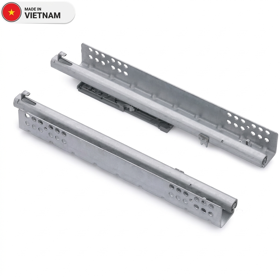 Glissières télescopiques modernes à fermeture amortie de type coulissement complet pour tiroirs de meubles de cuisine, de salle à manger et de chambre