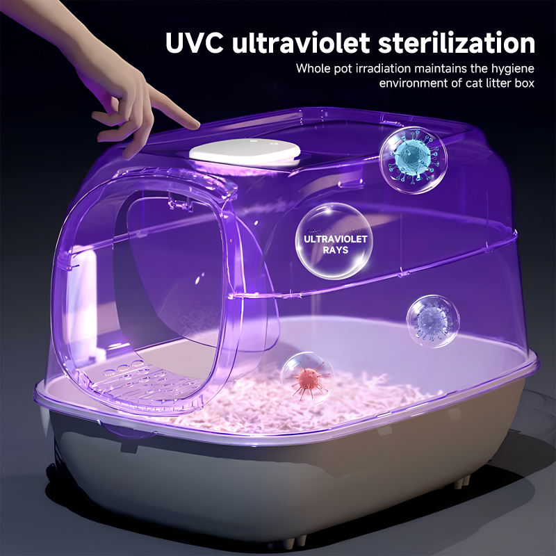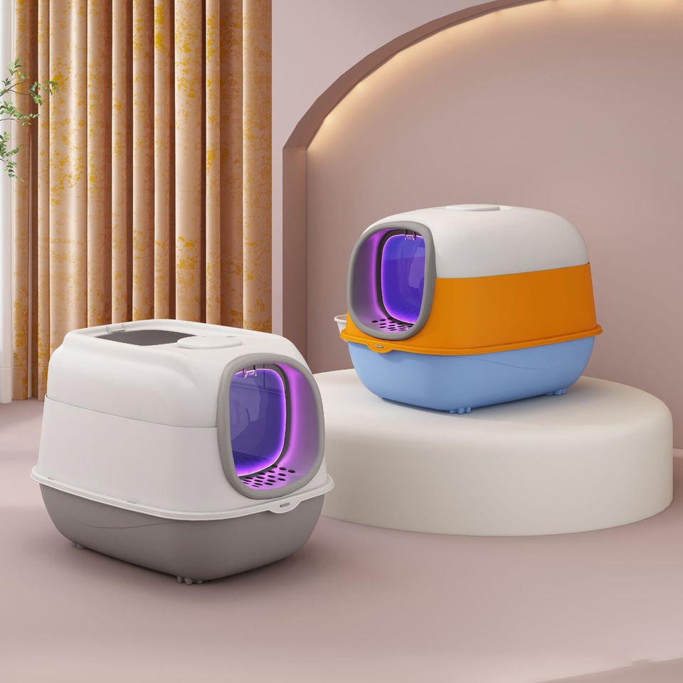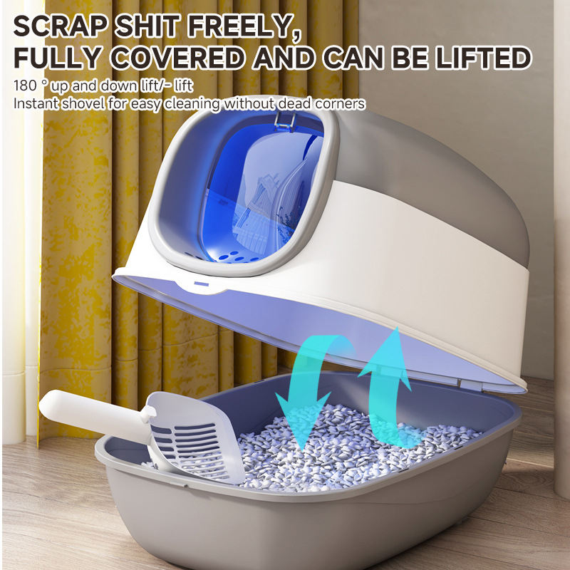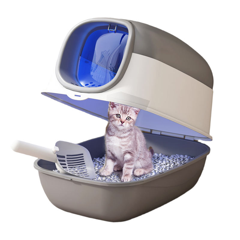 Bac à litière pour chat moderne entièrement fermé, surdimensionné, anti-éclaboussures, en plastique, pour chiens et chats